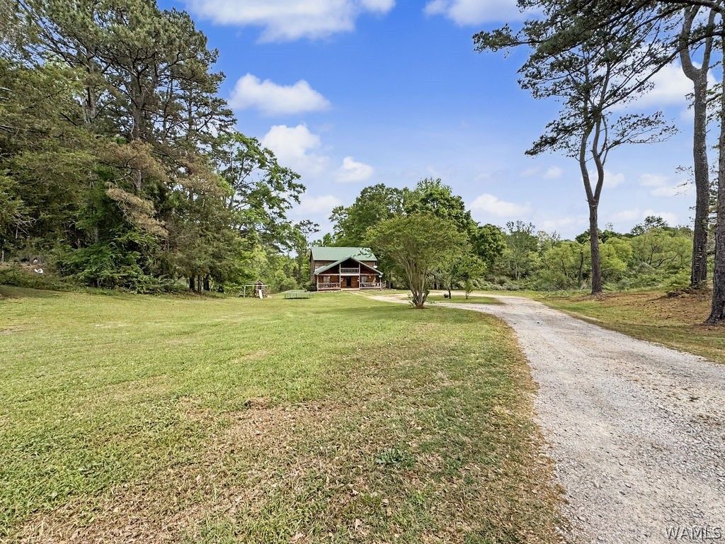 Log-cabin style home situated on 2.17 acres with direct paved state highway frontage. This 4-bedroom, 2-bath residence offers 3,203 sq ft featuring an open layout, stone fireplace, and vaulted ceilings. Steel frame construction and tin roof provide durable, low-maintenance living. The unfinished basement includes garage door access and is stubbed for an additional bathroom. Property provides room for gardening, animals, or outdoor recreation in a quiet rural setting. Call today for more information or to schedule a showing.